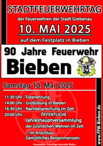 Anlässlich des 90-jährigen Bestehens der Freiwilligen Feuerwehr Bieben findet ab: